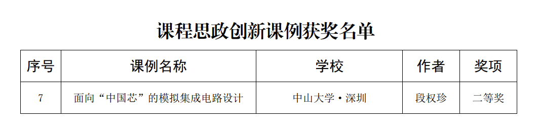 喜报丨集成电路学院段权珍副教授荣获深圳市“课程思政创新课例”二等奖