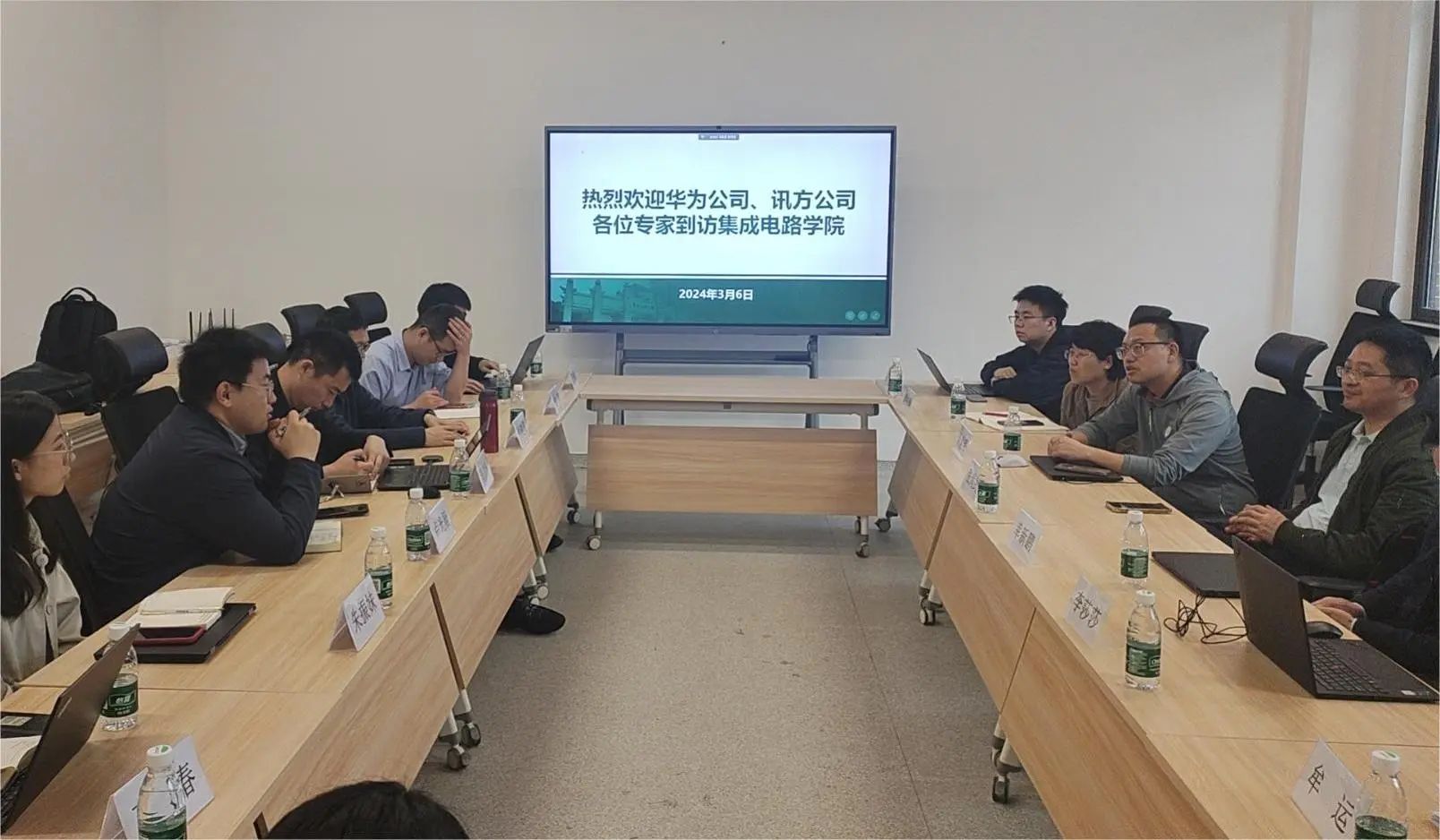 2024年3月6日上午,华为技术有限公司(以下简称“华为”)、深圳市讯方技术股份有限公司(以下简称“讯方”)到访中山大学集成电路学院,双方就校企合作、产教融合等话题进行了交流与探讨。集成电路学院徐建明副院长主持会议,华为云工业软件云产品部产教融合总监侯建国、华为云深圳工业软件云创新中心总经理卢光栩、讯方华南片区业务总监陈梦琳等出席会议,集成电路学院直属党支部书记张尚武、专任教师代表和相关工作人员参会。