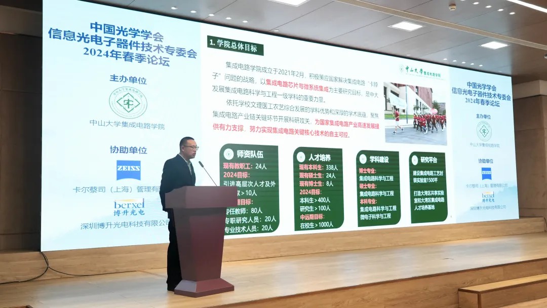 2024年2月22日,为促进学术交流,分享最新研究成果,探讨未来信息光电子器件技术领域的发展趋势,中山大学集成电路学院协同卡尔蔡司(上海)管理有限公司与深圳市博升光电科技有限公司,于深圳市人才研修院召开了中国光学学会信息光电子器件技术专委会春季论坛。