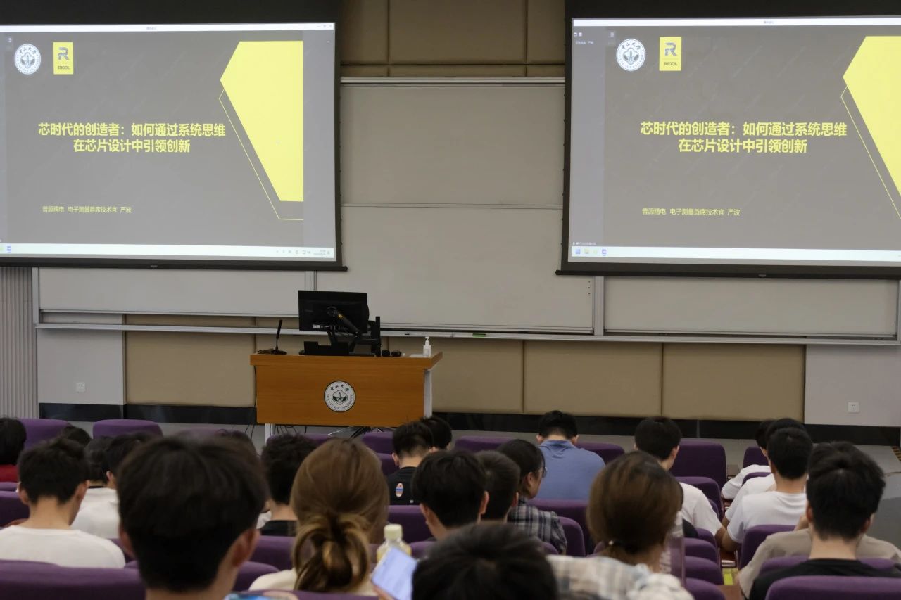 本次讲座由集成电路学院幸新鹏副教授主持,由普源精电科技股份有限公司(RIGOL)电子测量首席技术官严波先生主讲,为学院第二届“创‘芯’”科技文化节拉开序幕。