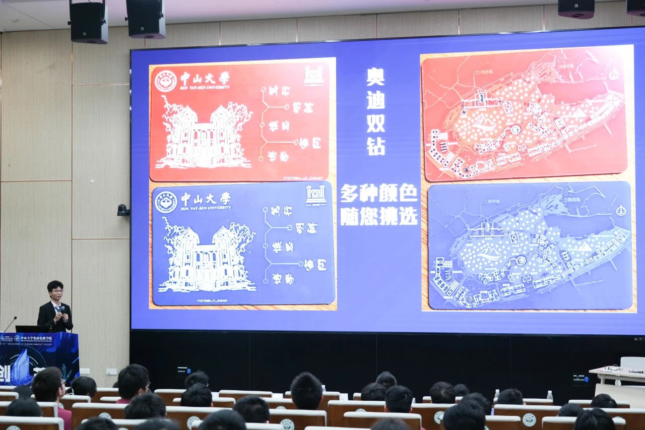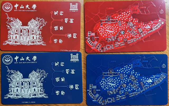校园卡与PCB板结合,用各式元件封装绘制出中山大学深圳校区地图,正面印有怀士堂艺术画等。