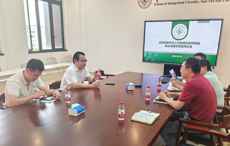 2024年5月30日下午,中山大学人民武装部(国防教育中心)徐亮副部长(副主任)、谢华老师一行到访集成电路学院,就学院学生工作、人民武装工作情况开展调研与指导。集成电路学院直属党支部副书记李锦华,学院团委书记、党政专职辅导员何琛,研究生学生工作负责教师卢弘博,研究生学生兼职辅导员王欣远参加调研座谈。