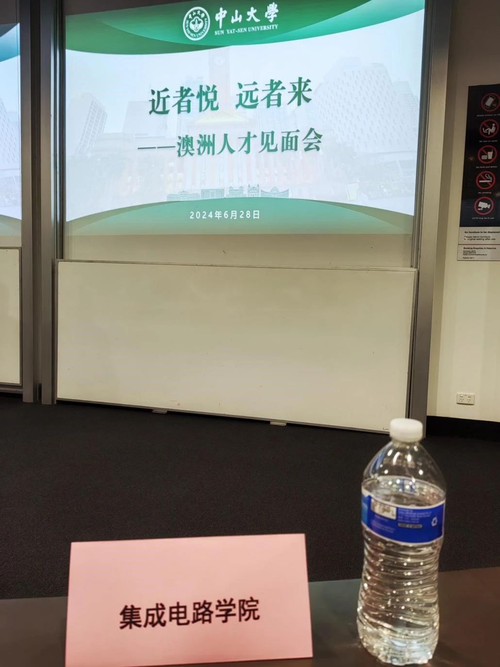 6月28日,中山大学校长高松院士携职能部门一行在澳大利亚布里斯班举行了海外人才见面会,集成电路学院李锦华副书记作为院系代表,随同出行。