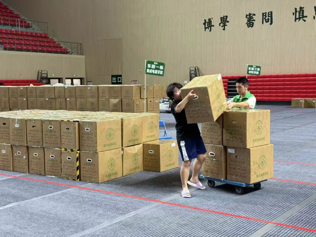 7月6日,2024级本科生在学校统一安排下,将行李整理打包并有序运送至南校园新体育馆。