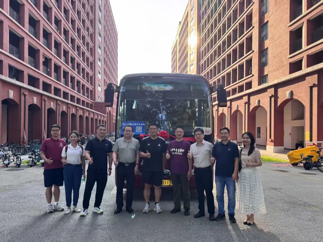 7月8日上午,在学校党委学生工作部统筹部署下,师生和行李正式启运,张尚武、何琛在现场开展安全指导。