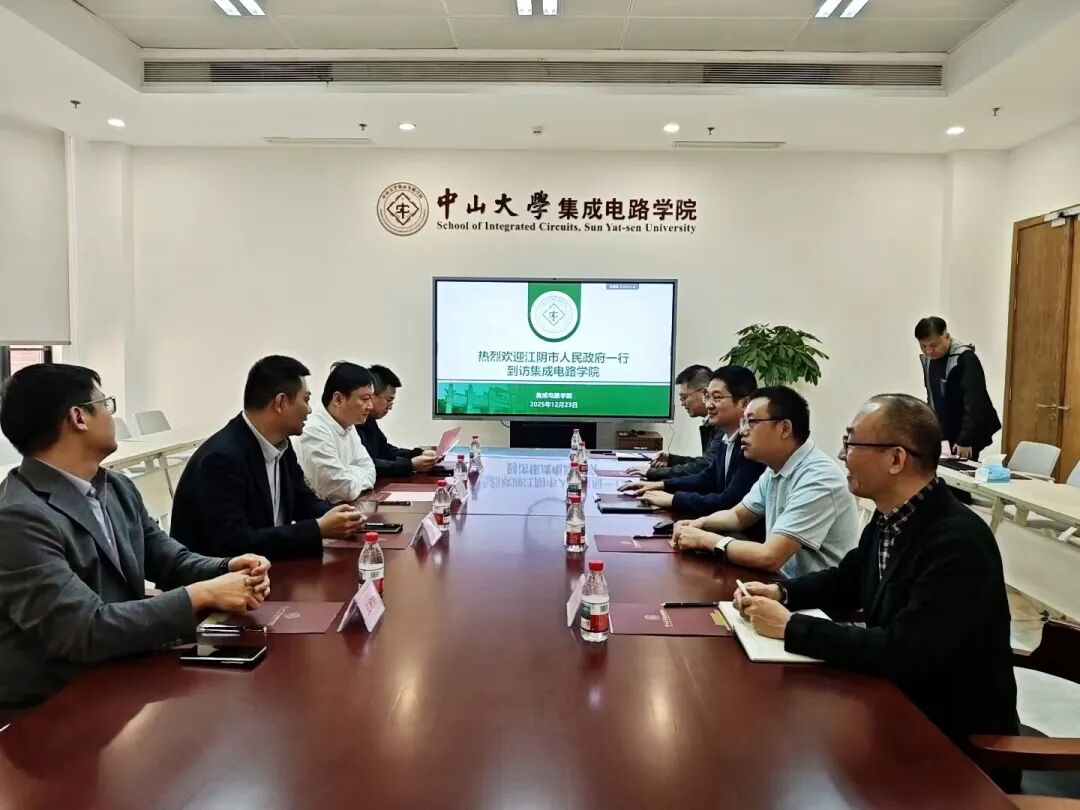 2025年12月23日下午,江苏省江阴市人民政府副市长季震率市科学技术局党组书记、局长李奕,市科技人才发展集团董事长、总经理王寅炯以及市科学技术局副局长刘智超等一行到访集成电路学院。