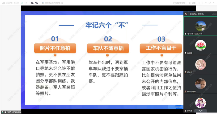 班会围绕纪律教育、安全教育、反诈教育、保密教育及消防安全培训展开,全面强化研究生安全意识、纪律意识与保密观念,明确校园行为规范与科研学习要求,为新学期科研学习与校园生活筑牢安全保障。
